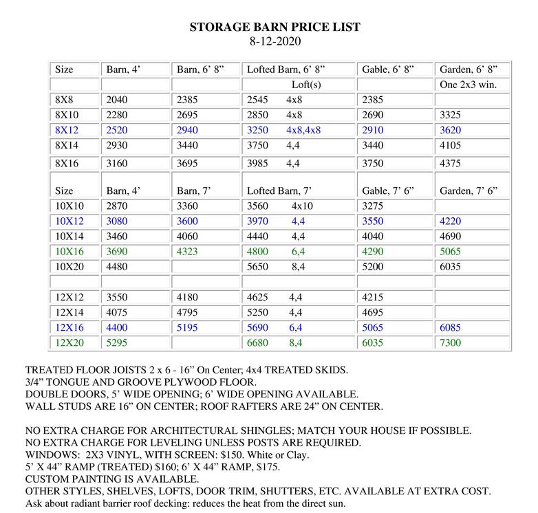 PRICES FOR SHEDS BUILT ON-SITE